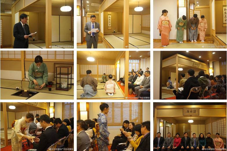日本茶道交流会在广东外语外贸大学"佳乐庵"茶室顺利举行 2017/3/9 3月9日下午,由我馆和广东外语外贸大学联合主办的日本茶道交流会在“佳乐庵”茶室顺利举行。在里千家茶道驻广州讲师岩间宗恭老师的带领下,广外茶道部的师生们为观众献上了精彩的茶道表演。