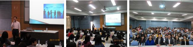 深セン職業技術学院にて「講演キャラバン」を開催 平成29年12月6日 12月6日午後,「講演キャラバン」巡回講演が深セン職業技術学院で開催されました。MUFGバンク(中国)有限公司深セン支店の松本達哉支店長が演壇に登り,「日本企業の文化と人材育成」をテーマに,会場に訪れた同学院の教員や学生達に幅広い内容の講演が行われました。