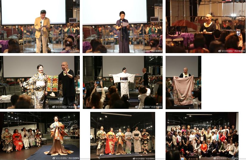 齋藤法雄在広州日本国総領事は挨拶の中で、「冨田先生は、着物デザイナー及び着付けのプロフェッショナルとして活躍されている日本を代表する専門家の一人であり、歌舞伎や映画女優等の着物の製作やスタイリストを手がける傍ら、着物作りの職人技術の継承・保護にも高い問題意識を持たれ、着物を通した地域文化のPR活動に貢献されており、京都をはじめ、数多くの地方自治体の観光大使を務めていらっしゃいます。また、世界各地で和服の紹介活動を積極的になされており、特に和服のルーツとも言える中国では、上海、大連等の数多くの大学でリレー講義を開かれています。冨田先生には、今回日本から特別に美しい着物をご持参いただきましたので、日本の着物の美しさを眼前で堪能していただければ幸いです。」と冨田先生のこれまでの経歴等を紹介しました。
