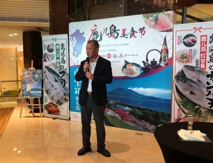 龟井总领事出席鹿儿岛美食节并致辞 2023/6/29 6月29日,龟井总领事出席了由广州日航酒店主办、本馆后援的“鹿儿岛美食节”(7月1日至31日)媒体发布会活动并致辞。龟井总领事对活动致以祝贺,并表示期待中国朋友们通过本次美食节活动更加了解日本的地方魅力。在发布会上,从日本鹿儿岛县进口的鰤鱼、红甘鱼等特色水产品和烧酒等精彩亮相,向现场观众充分展现了鹿儿岛县的魅力。