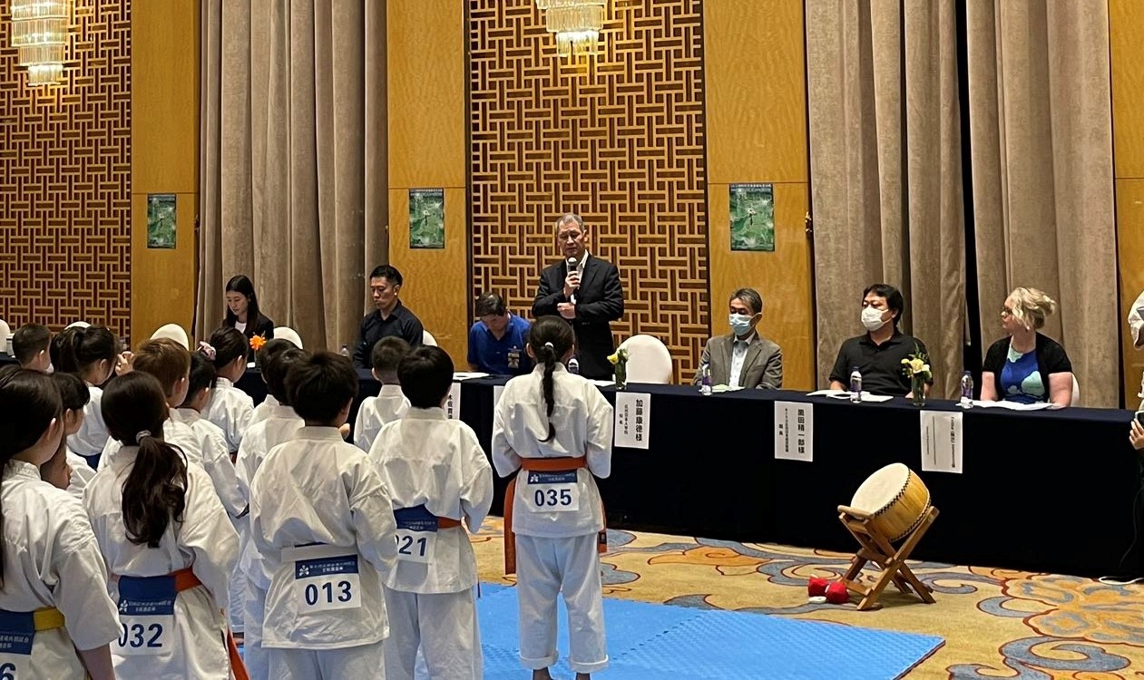 龟井总领事于国际空手道联盟极真会馆广州道场举办的第五届内部比赛“日航酒店杯”上致辞 2023/5/21 5月21日,龟井总领事出席了由国际空手道联盟极真会馆广州道场举办的第五届内部比赛“日航酒店杯”并作为嘉宾致辞。总领事在致辞中表示,期待选手们充分展示日常训练的成果,并感谢广州道场的友好交流及广州日航酒店在宣传日本地方魅力等方面做出的贡献。