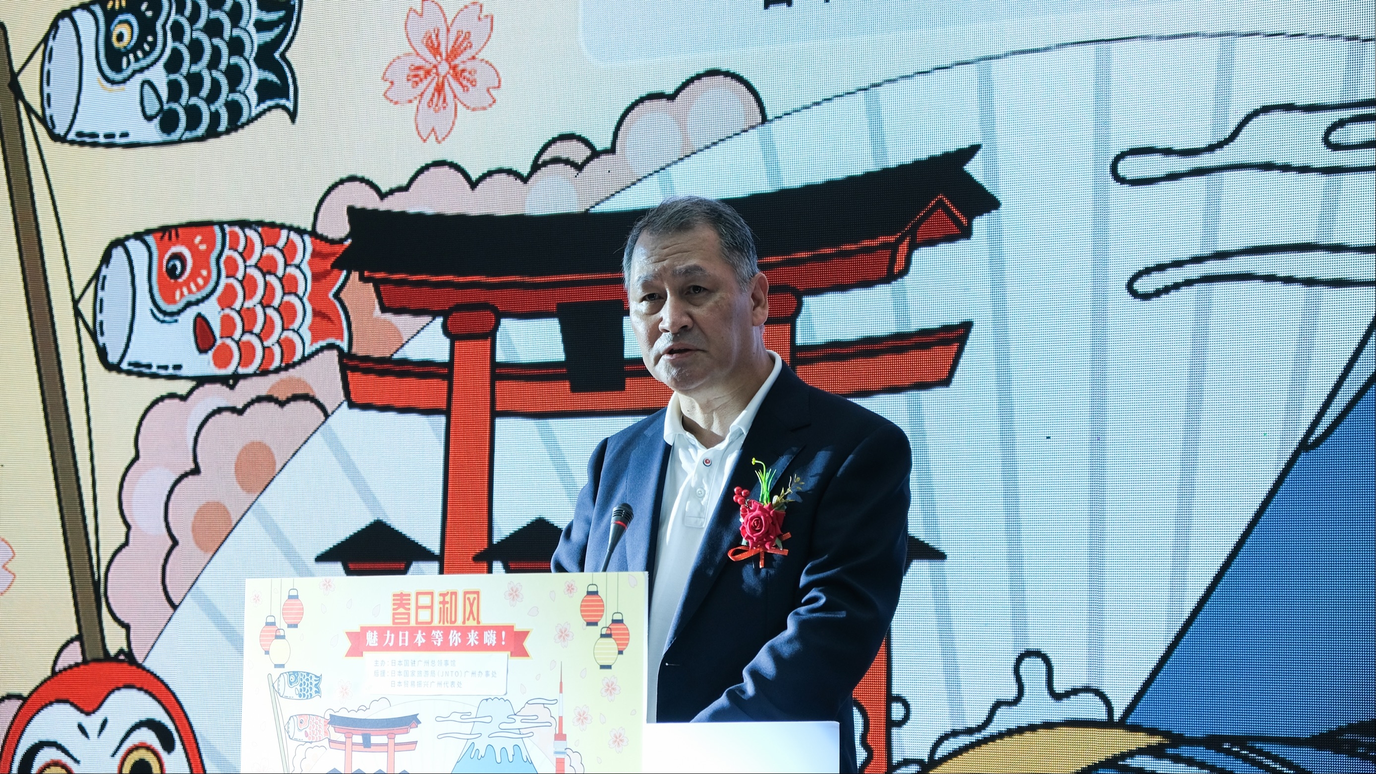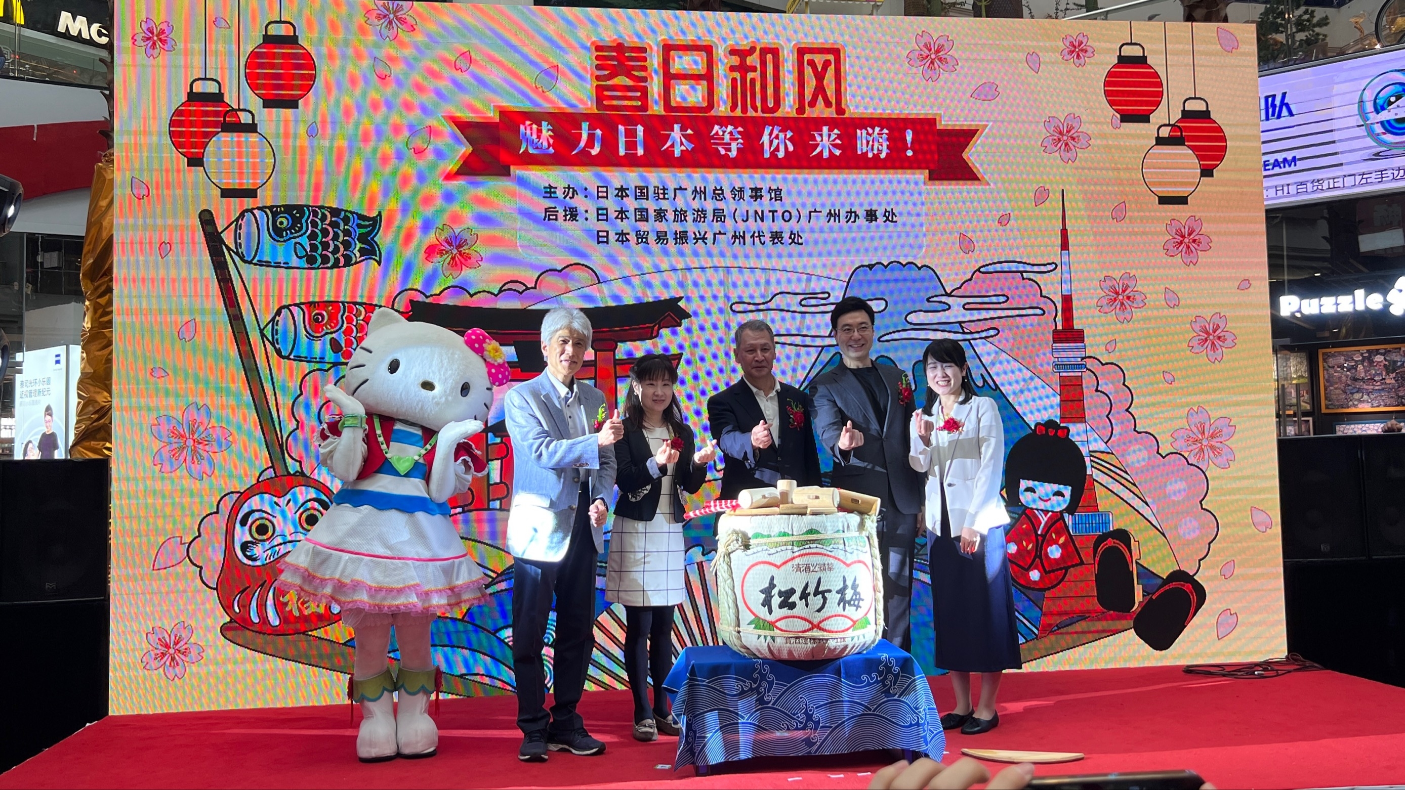 3月18日至3月20日,由日本国驻广州总领事馆主办、日本贸易振兴机构(JETRO)广州代表处和日本国家旅游局(JNTO)广州事务所协办的“春日和风—魅力日本等你来嗨!”日本主题推广活动,在广州市内的大型商业中心正佳广场盛大举办。在3月19日的开幕式上,龟井总领事出席并致辞。