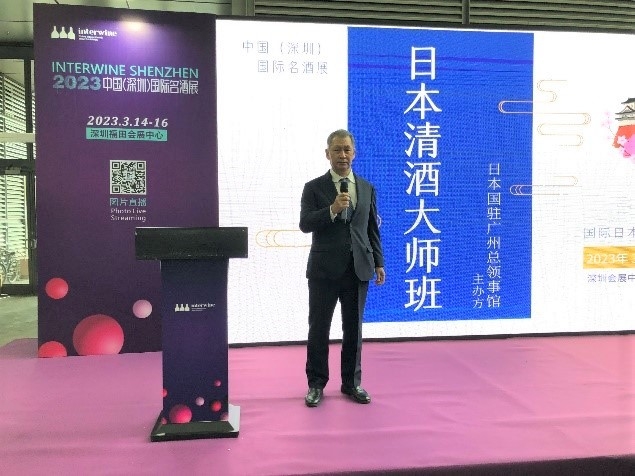 日本国驻广州总领事馆主办“日本清酒大师班”文化活动 2023/3/14 3月14日,我馆在深圳举办了“日本清酒大师班”活动。龟井总领事作为主办方代表致辞,表示希望借助本次活动加深大众对日本清酒的了解,期待为与会观众带来亲自品鉴清酒的机会。活动现场还邀请了国际日本清酒讲师周晓林先生介绍日本清酒的分类和酿造工艺等知识以外,准备了精选的清酒供观众试饮。