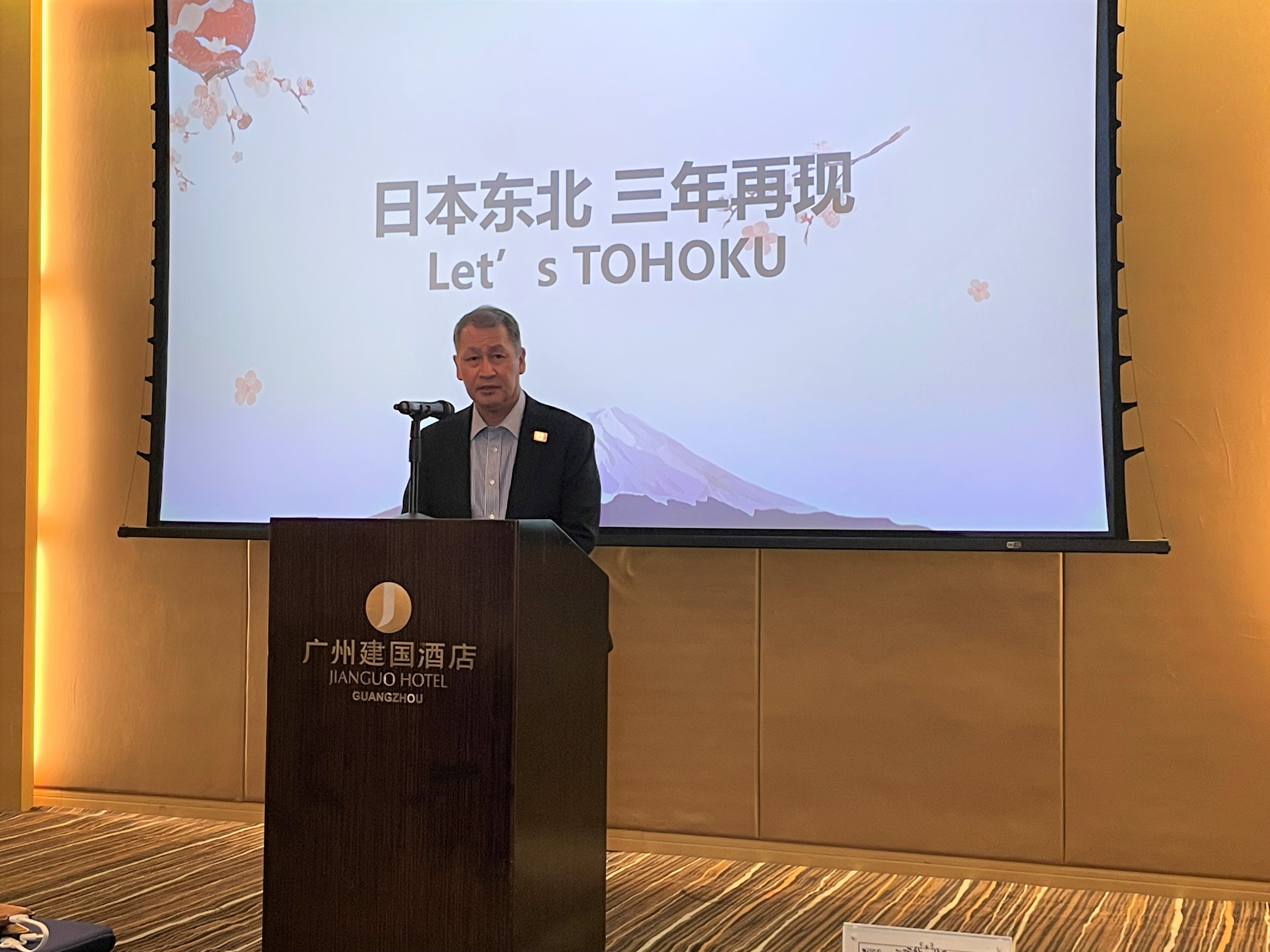 龟井总领事出席“日本国东北观光说明会”并致辞 2023/3/9 3月9日,龟井总领事出席以我馆后援名义举办的“日本国东北观光说明会”并致辞。在致辞中,总领事表示期待以本次活动为契机,能寻找到更多新的可能性来推动日本东北地区(青森、秋田、山形、岩手、宫城、福岛6县)和新潟县的观光旅游,并希望通过观光旅游的促进,日中交流能不断迈上新的台阶。在说明会上,主办方为大家介绍了东北6县和新潟县的魅力。