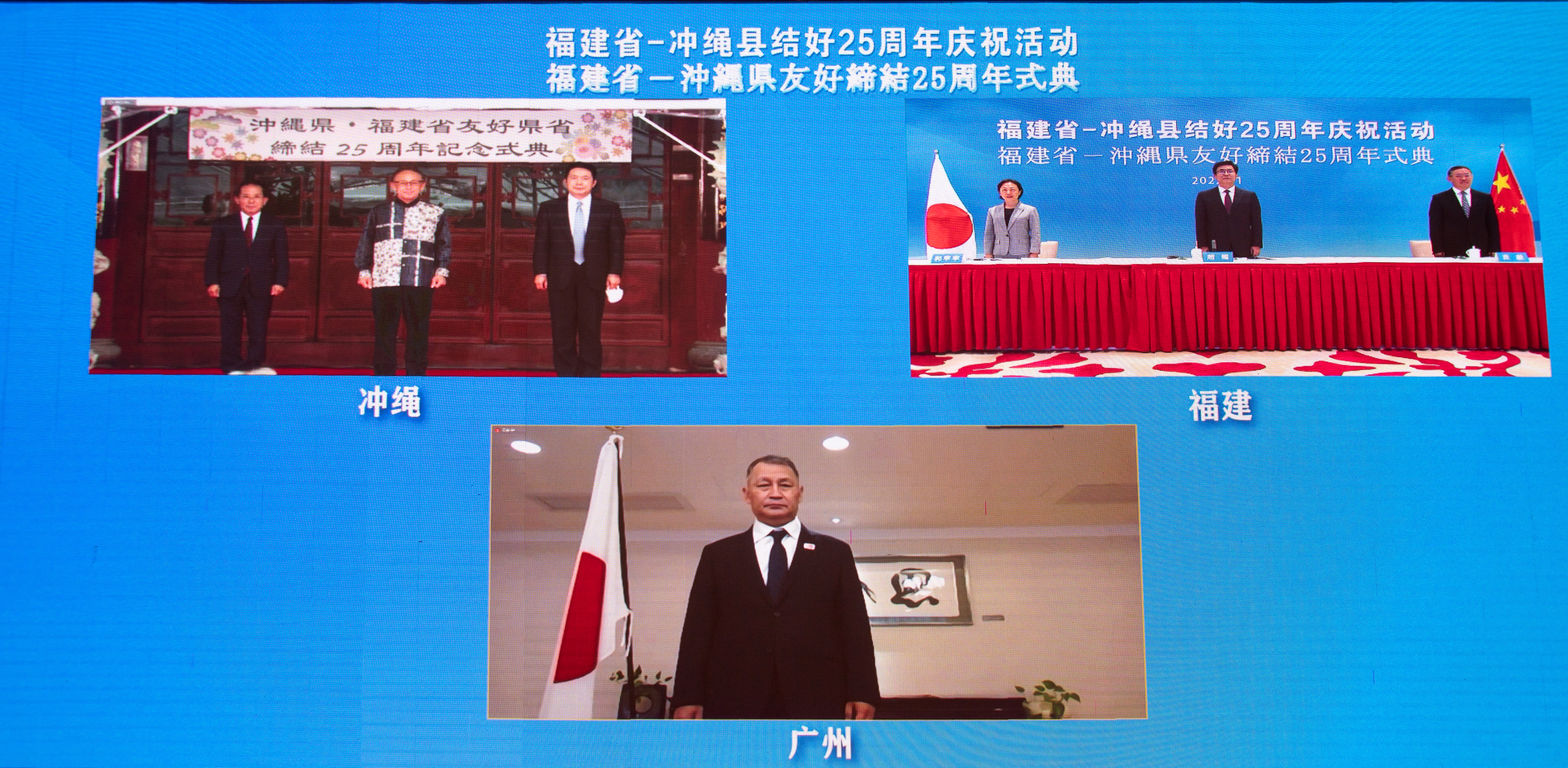 11月25日、龟井总领事出席了由冲绳县与福建省以线上方式举办的“冲绳县与福建省结好25周年庆祝活动”并致辞。赵龙福建省省长、玉城丹尼冲绳县知事等出席了本次活动。