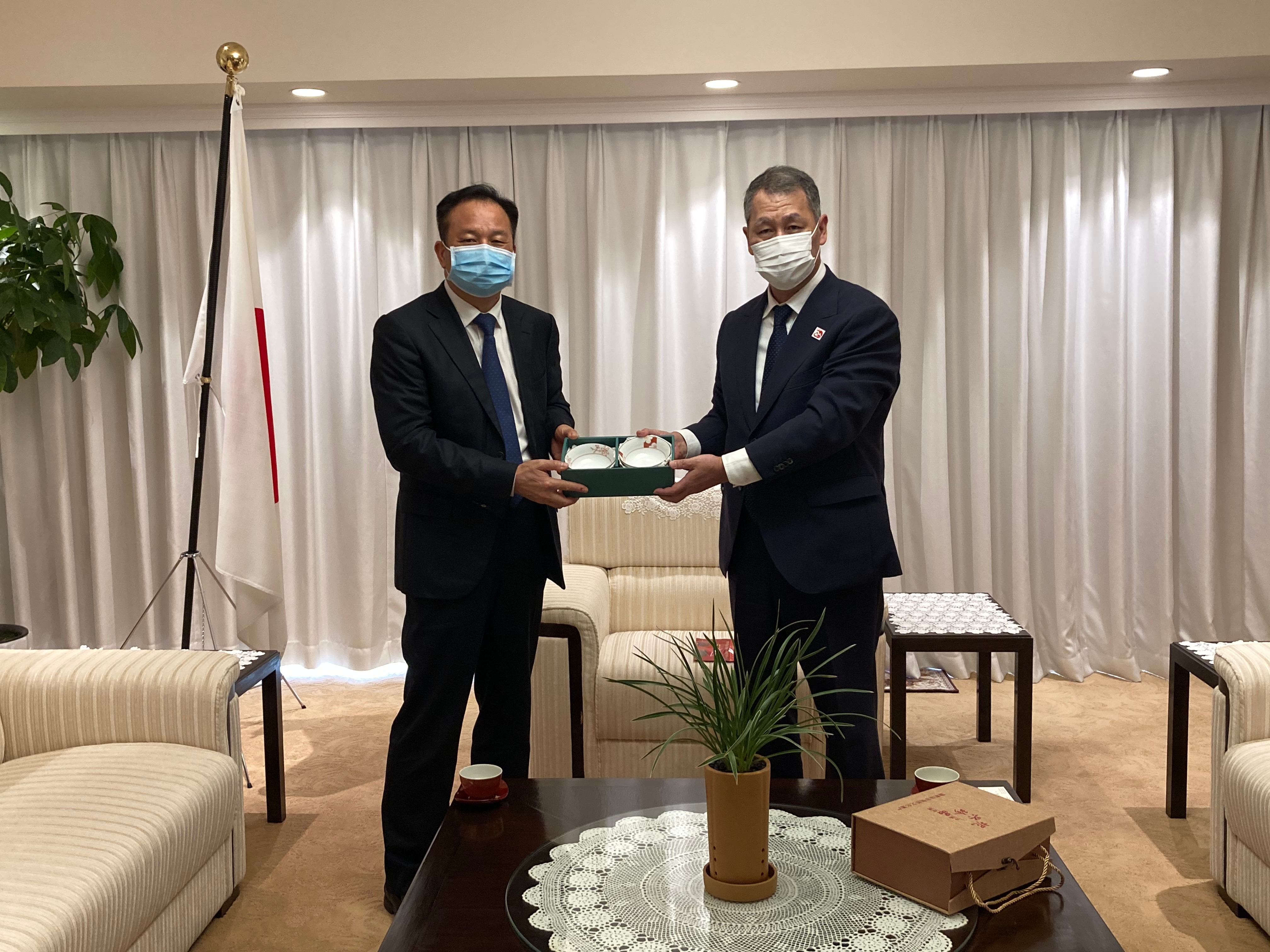 龟井总领事会见广西壮族自治区人民政府外事办公室主任石东龙先生 2022/8/9 8月9日,龟井总领事在我馆会见了广西壮族自治区人民政府外事办公室主任石东龙先生。会见中,双方就在经贸领域的合作、日本熊本县和广西壮族自治区缔结友好城市40周年的纪念活动等交换了意见。