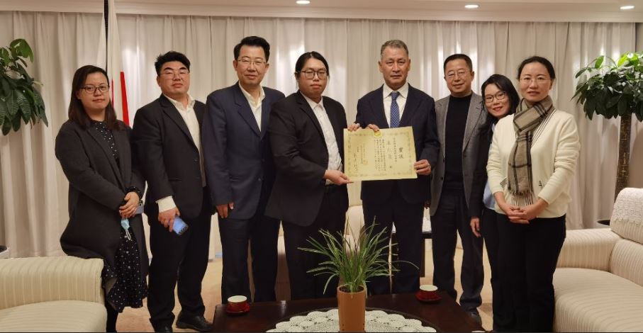 龟井总领事向“第八届广东省高职高专日语演讲比赛”获奖选手颁发“日本国驻广州总领事奖” 2021/12/21 12月20日,龟井总领事向在广州留东同学会主办的“第八届广东省高职高专日语演讲比赛”(决赛已于12月11日举行,本馆赋予后援名义)中夺得冠军殊荣、来自广州涉外经济职业技术学院的潘兆康同学颁发了“日本国驻广州总领事奖”。