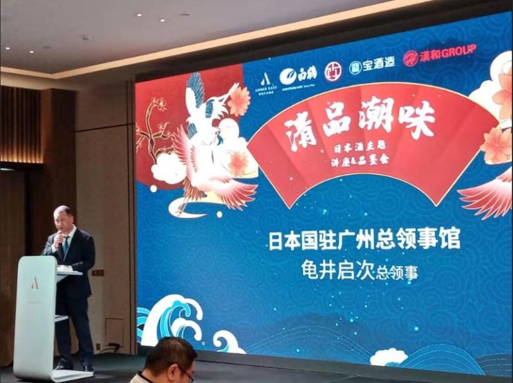 龟井总领事出席日本国驻广州总领事馆主办的“清品潮味”日本酒讲座并作为主办方代表致辞 2021/11/26 11月26日,龟井总领事在我馆主办的文化活动“清品潮味”日本酒讲座上作为主办方代表致辞。相关政府部门代表、日本料理行业代表等出席了活动。讲座中,日本酒利酒师黄山先生介绍了本地经典潮州菜和日本酒的搭配。