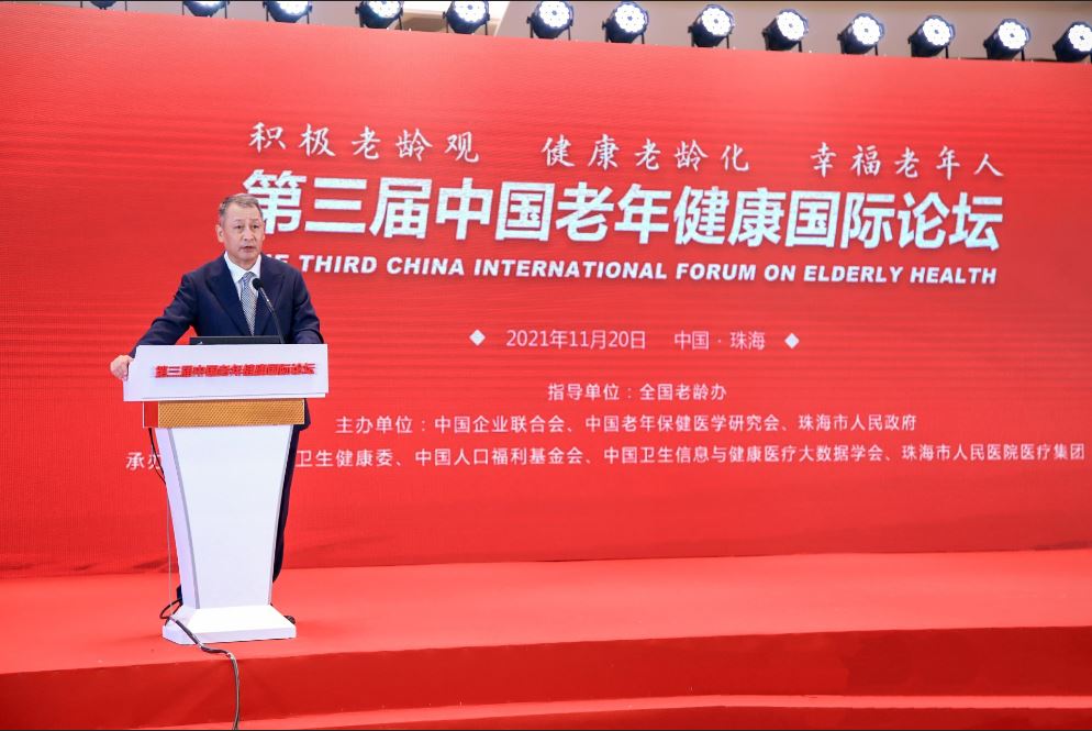龟井总领事出席第三届中国老年健康国际论坛 2021/11/20 11月20日,龟井总领事出席了在珠海举办的第三届中国老年健康国际论坛,并就日本的老龄化社会的情况及日中两国间在养老健康产业开展合作的可能性发表讲话。日本的养老健康产品等也在该论坛会场进行了展出。