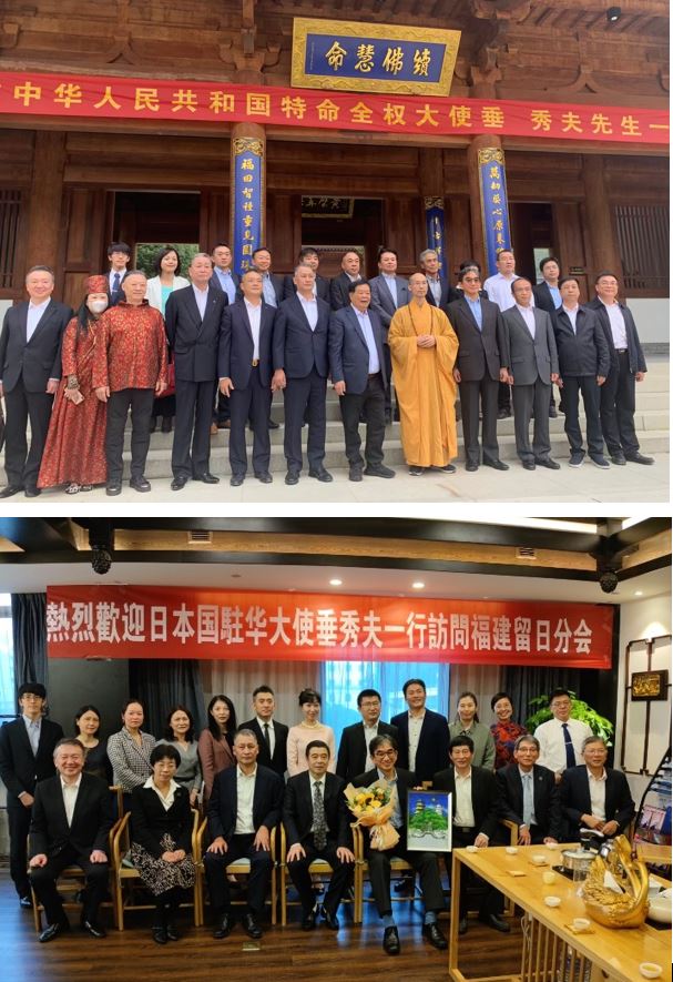 垂秀夫日本国驻华大使访问福建省福州市和福清市 2021/11/4 11月2日到4日,龟井总领事陪同垂秀夫大使访问了福建省福州市和福清市。在访问期间,垂大使和龟井总领事一同与当地政府、日资企业代表及日语教育相关人士进行了交谈,就为迎接明年日中邦交正常化50周年进一步加强日本与福建省之间的经贸合作和文化交流交换了意见。