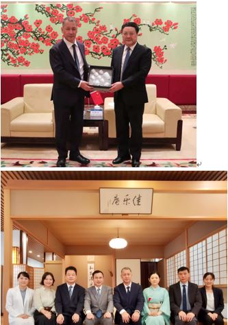 龟井总领事拜访广东外语外贸大学校长石佑启先生 2021/5/14 5月14日,龟井总领事拜访了广东外语外贸大学校长石佑启先生,就日中文化交流及当地的日语教育情况交换了意见。其后,龟井总领事还参观了日式茶室“佳乐庵”,深入了解日本茶道在本地的活动交流情况。