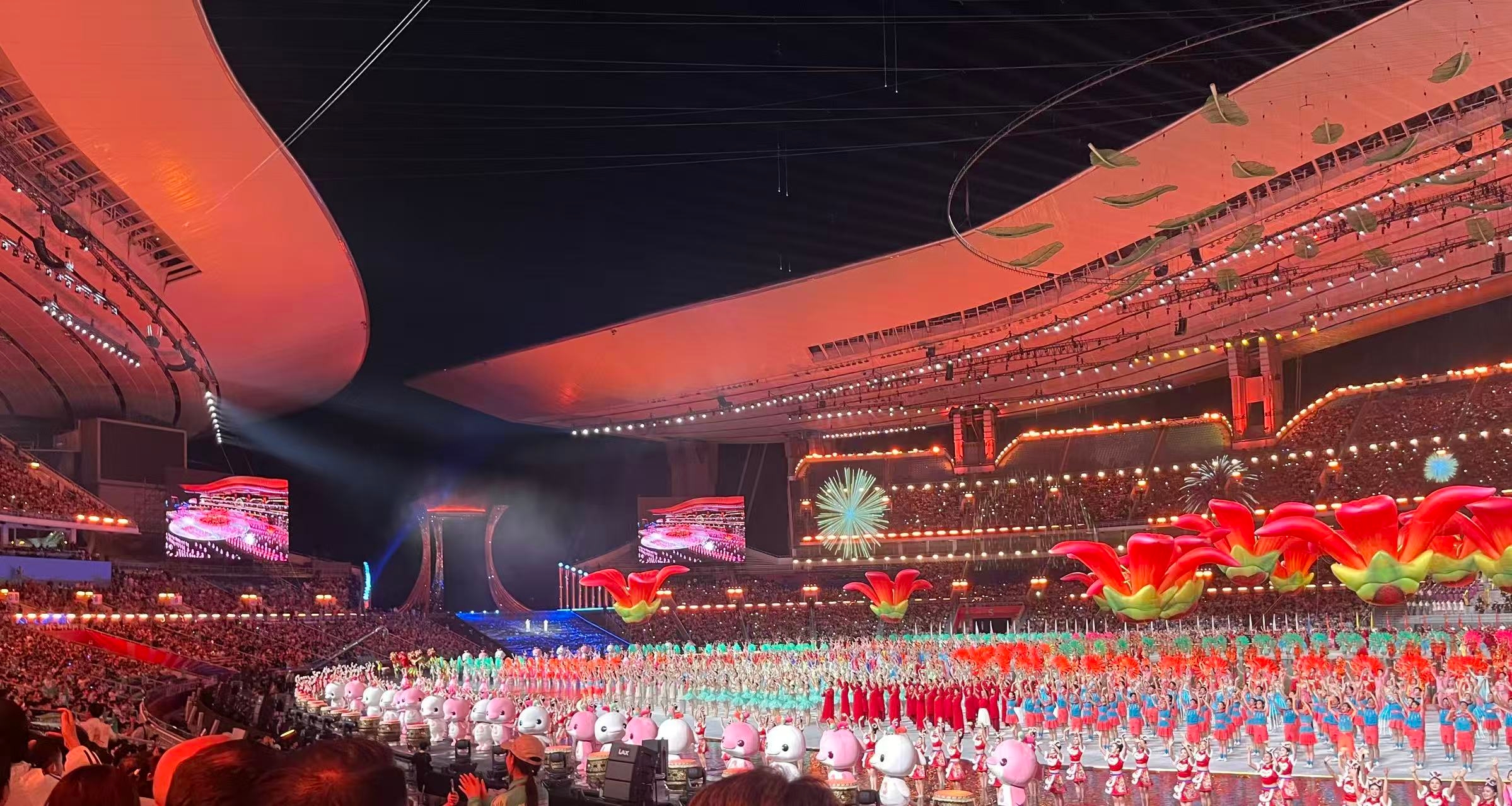 貴島総領事の第15回全国運動会開幕式出席 令和7年11月9日 11月9日、貴島善子総領事は、広東省政府の招待を受け、在広州の各国総領事とともに、第15回全国運動会開幕式に出席しました。広東省、香港、マカオの共同主催らしい海上交通や木綿華をイメージした華やかな嶺南文化のパフォーマンスと若者の身体能力の高さを活かした演目を堪能しました。各省、自治区の選手入場の際には、断然、広東省、福建省、広西チワン族自治区、海南省への応援に力を入れました。